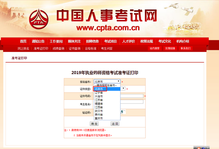 執(zhí)業(yè)藥師網(wǎng)上打印準(zhǔn)考證網(wǎng)址:中國人事考試網(wǎng)(http://www.cpta.com.cn)