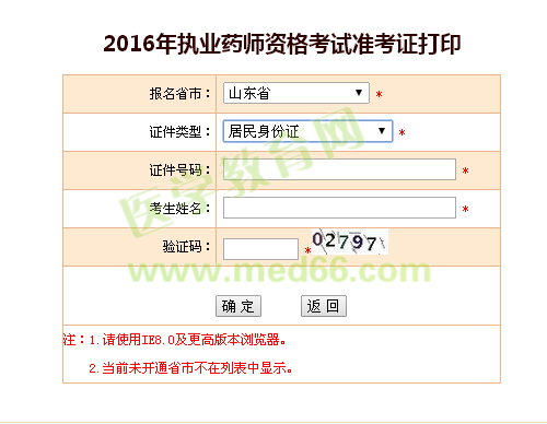 山東2016年執(zhí)業(yè)藥師考試準(zhǔn)考證打印入口: