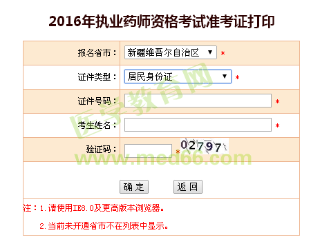 2016年新疆執(zhí)業(yè)藥師考試準(zhǔn)考證打印入口: