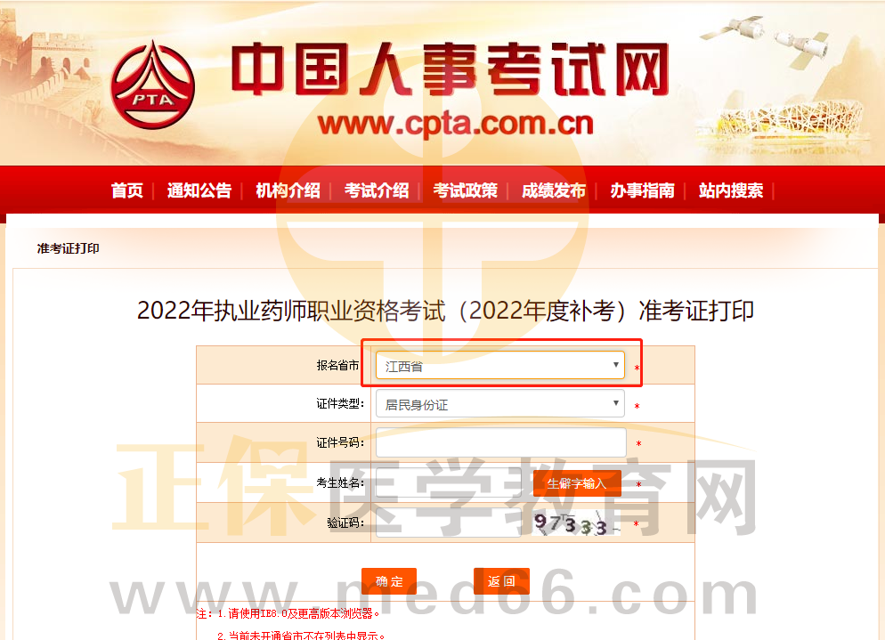 【江西】2022年執(zhí)業(yè)藥師補(bǔ)考準(zhǔn)考證打印入口已開(kāi)通!