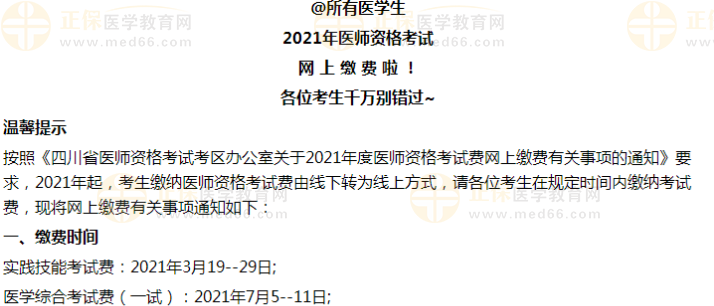 關(guān)于“重要提示!2021年執(zhí)業(yè)醫(yī)師資格考試簡陽市技能繳費(fèi)時(shí)間及方式!”的內(nèi)容,相信很多人都比較感興趣,醫(yī)學(xué)教育網(wǎng)編輯整理了官方文件全文如下:
