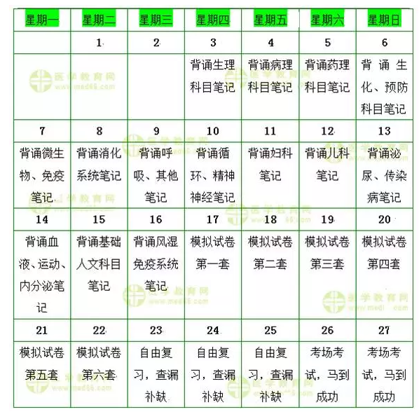 送你一份執(zhí)業(yè)醫(yī)師考前一周復(fù)習(xí)安排計(jì)劃