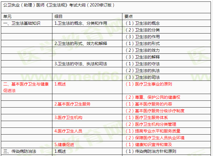 附件下載:公衛(wèi)執(zhí)業(yè)(助理)醫(yī)師《衛(wèi)生法規(guī)》大綱(2020修訂版)