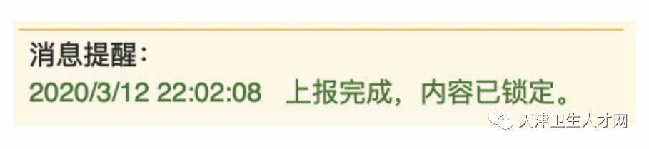注意:提交后,考生界面會(huì)顯示上報(bào)完成,內(nèi)容已鎖定的提示(鎖定即無(wú)法自行修改上傳材料),表示上傳成功。如下圖提示: