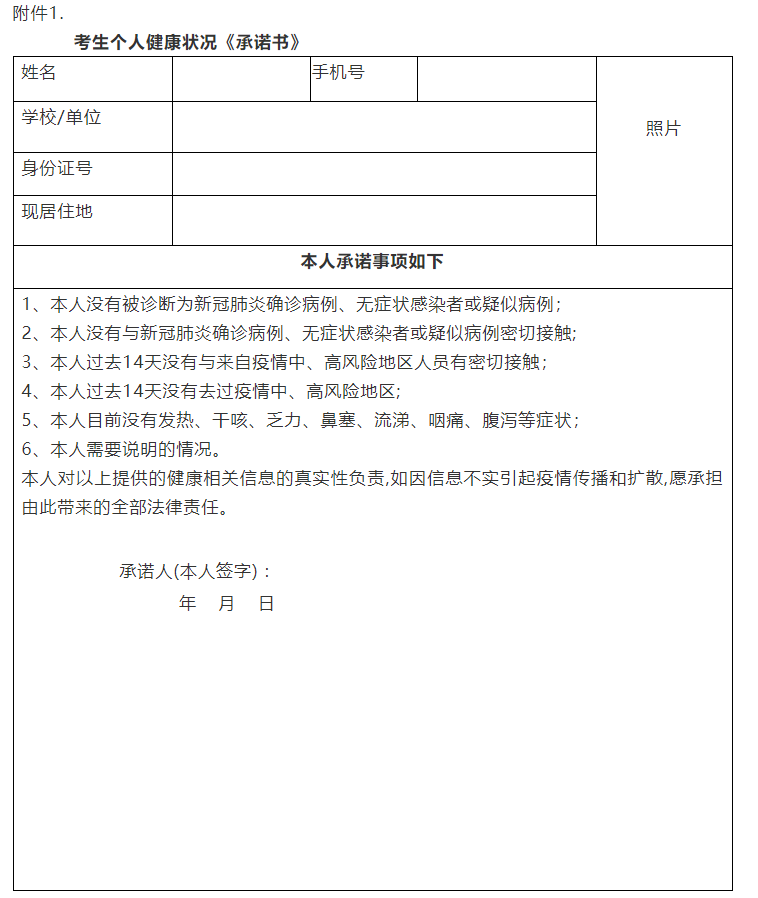 附件1.考生個(gè)人健康狀況《承諾書(shū)》