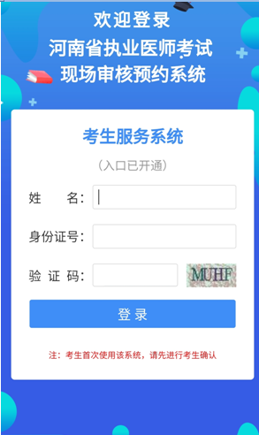 河南省2020年執(zhí)業(yè)醫(yī)師現(xiàn)場(chǎng)審核考生操作頁面流程(使用考生入口),醫(yī)學(xué)教育網(wǎng)編輯為大家整理如下: