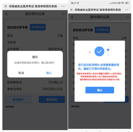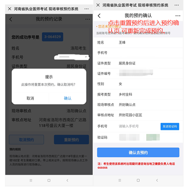 1.考生在“我的預(yù)約記錄頁”(如上圖右),點(diǎn)擊重新預(yù)約,可重新預(yù)約