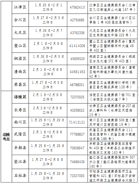 附件:重慶考區(qū)2021年醫(yī)師資格考試現(xiàn)場(chǎng)審核一欄表