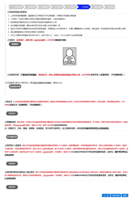 第五步:根據(jù)提示依次上傳已經(jīng)準(zhǔn)備好的材料,記得仔細(xì)看合格樣例。