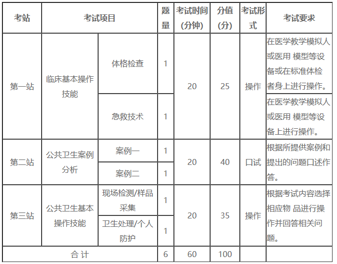 (1)考試內(nèi)容:公共衛(wèi)生基本操作技能,包括現(xiàn)場檢測、樣品采集、衛(wèi)生處理和個人防護技能。