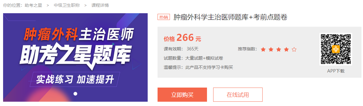 下載地址:腫瘤外科主治醫(yī)師助考之星題庫(kù)下載入口>>