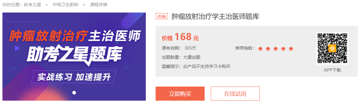下載地址:腫瘤放射治療主治醫(yī)師助考之星題庫下載入口>>