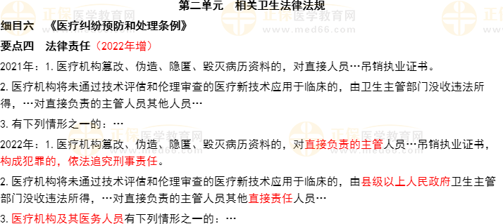 2022年中西醫(yī)內科主治醫(yī)師考試指導教材已經(jīng)公布,經(jīng)過醫(yī)學教育網(wǎng)專業(yè)人員核對,與2021年教材相比有較大變化,醫(yī)學教育網(wǎng)整理2022年中西醫(yī)內科主治醫(yī)師考試官方教材《衛(wèi)生法規(guī)》變動如下: