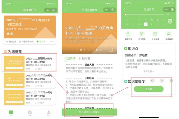 第三步:選擇打卡計(jì)劃,“2023***30天考點(diǎn)打卡(第三階段)”,點(diǎn)擊下方“加入計(jì)劃開(kāi)始學(xué)習(xí)”,進(jìn)入學(xué)習(xí)知識(shí)點(diǎn)并答題。
