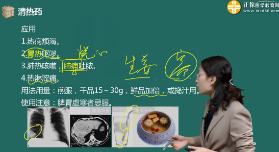 應(yīng)用:①熱病煩渴。②胃熱嘔噦。③肺熱咳嗽,肺癰吐膿。④熱淋澀痛。