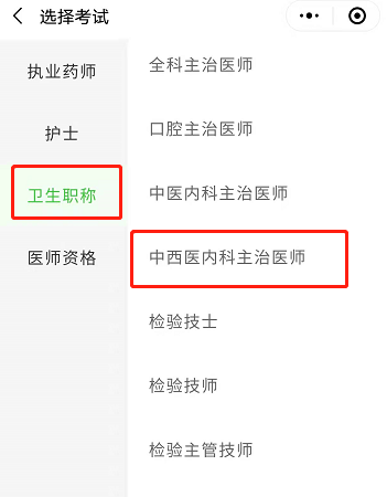 2、選擇“中西醫(yī)內(nèi)科主治醫(yī)師”類別進入自己做對應的類別題庫。