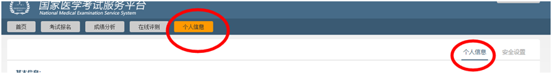 圖示選擇“個人信息”標簽進行模塊跳轉