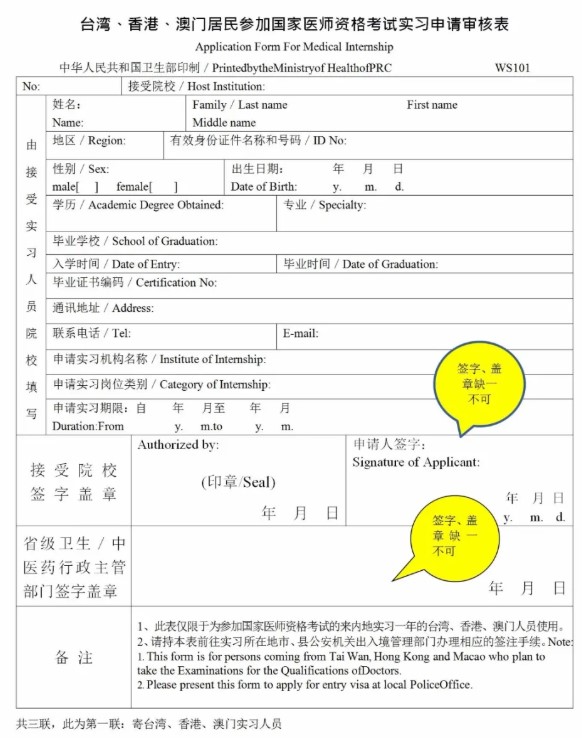 甘肅省港澳臺(tái)居民參加21年醫(yī)師資格考試實(shí)習(xí)申請(qǐng)表填寫注意事項(xiàng)