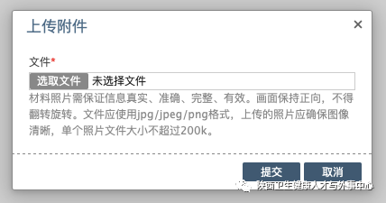 文件應使用jpg/jpeg/png格式,上傳的照片應確保圖像清晰,單個照片文件大小不超過200k。