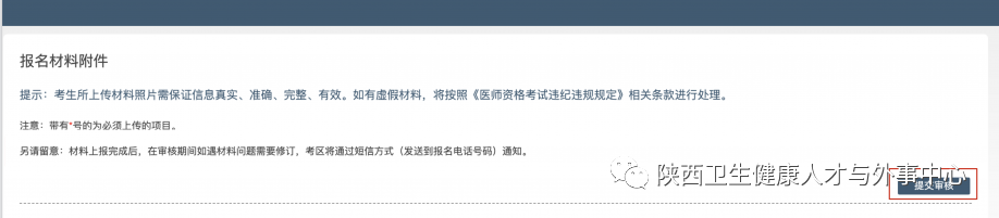 進入國家醫(yī)學考試(陜西)考生服務系統(tǒng)(在線審核系統(tǒng))后,顯示的是材料上傳界面