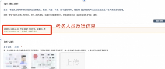 考生可根據(jù)考區(qū)要求的時(shí)間或通知,登陸上述上傳頁(yè)面查看您的醫(yī)師資格考試報(bào)名材料審核反饋意見,并根據(jù)反饋意見補(bǔ)充完善相關(guān)材料。