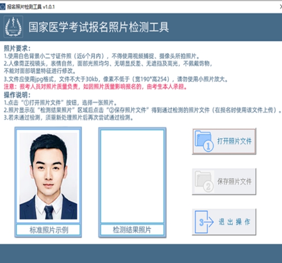 報名上傳照片前須通過“醫(yī)考報名照片檢測工具”(下載地址在上傳照片界面處提示,如下圖)進行檢測處理。檢測過程請嚴格按頁面說明操作,檢測通過后保存,登陸國家醫(yī)學考試考生服務系統(tǒng)報名時上傳,報名系統(tǒng)不接受未經(jīng)該工具檢測的照片。請廣大考生提前準備,以免影響考試報名。