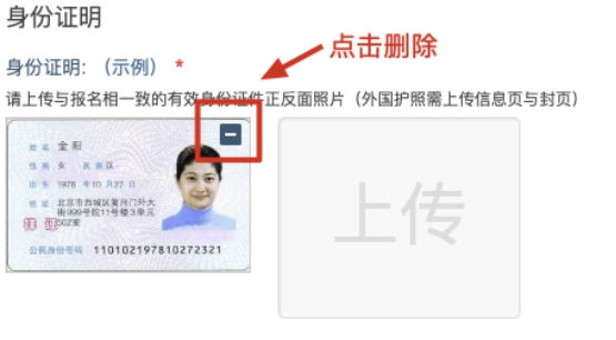 以身份證明上傳為例,點擊“示例”查看要求,再點“上傳”按鈕,進(jìn)入上傳圖片界面,將個人已經(jīng)準(zhǔn)備好的圖像文件上傳。如下圖: