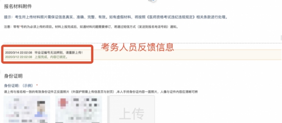 在資格審核期間,若考生收到審核電話反饋,或登錄報名網(wǎng)站訪問文件上傳頁面,在頁面上部可查看反饋意見,應(yīng)根據(jù)反饋內(nèi)容,對解鎖的材料進(jìn)行調(diào)整并重新完成上傳。注意:反饋意見補充完善相關(guān)材料,具體內(nèi)容和方式以電話通知為準(zhǔn)。