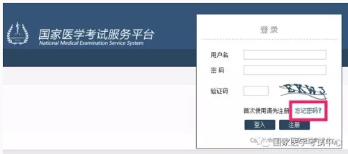 打開國家醫(yī)學考試考生服務(wù)系統(tǒng),點擊下方的忘記密碼