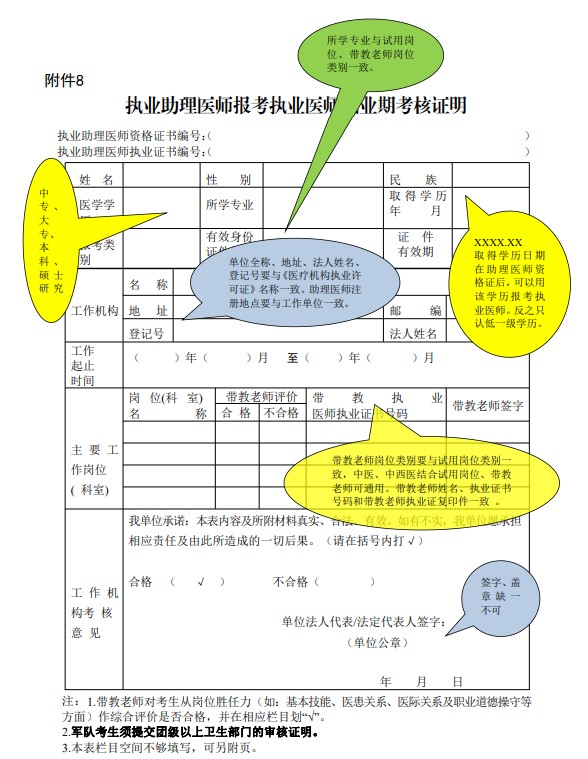 2022年中西醫(yī)執(zhí)業(yè)助理醫(yī)師報(bào)考執(zhí)業(yè)醫(yī)師執(zhí)業(yè)期考核證明填寫說(shuō)明