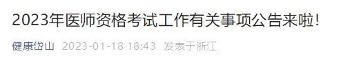 浙江岱山考點2023中西醫(yī)執(zhí)業(yè)醫(yī)師資格考試報名公告已出!2月17日線下審核