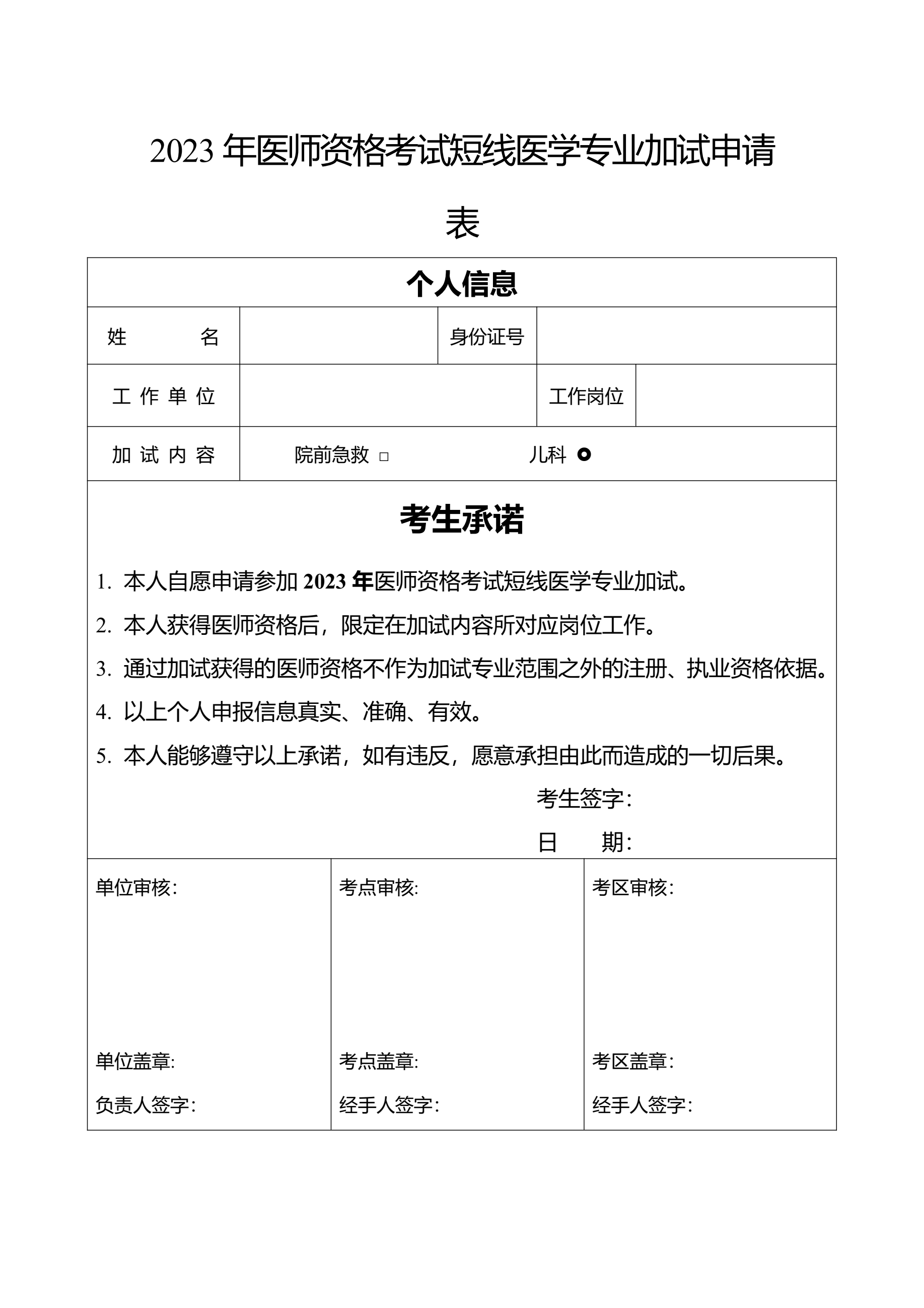 2023年醫(yī)師資格考試重慶考區(qū)考生報(bào)考短線醫(yī)學(xué)專(zhuān)業(yè)加試申請(qǐng)表
