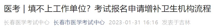 吉林長春考點(diǎn)發(fā)布了2023醫(yī)師資格考試報(bào)名申請?jiān)鲅a(bǔ)衛(wèi)生機(jī)構(gòu)流程,醫(yī)學(xué)教育網(wǎng)小編專門整理如下,請相關(guān)考生仔細(xì)查看!