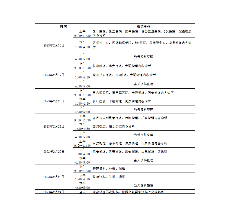 三、各醫(yī)院、各街道診所審核時間安排(見下表)。