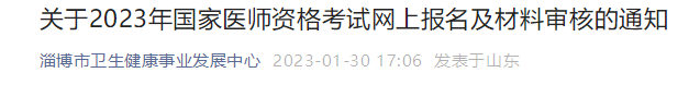 山東淄博考點關(guān)于2023年國家醫(yī)師資格考試網(wǎng)上報名及材料審核的通知