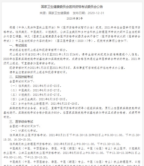 官宣!全國2021年執(zhí)業(yè)/助理醫(yī)師資格考試網(wǎng)上報(bào)名入口1月6日開通!