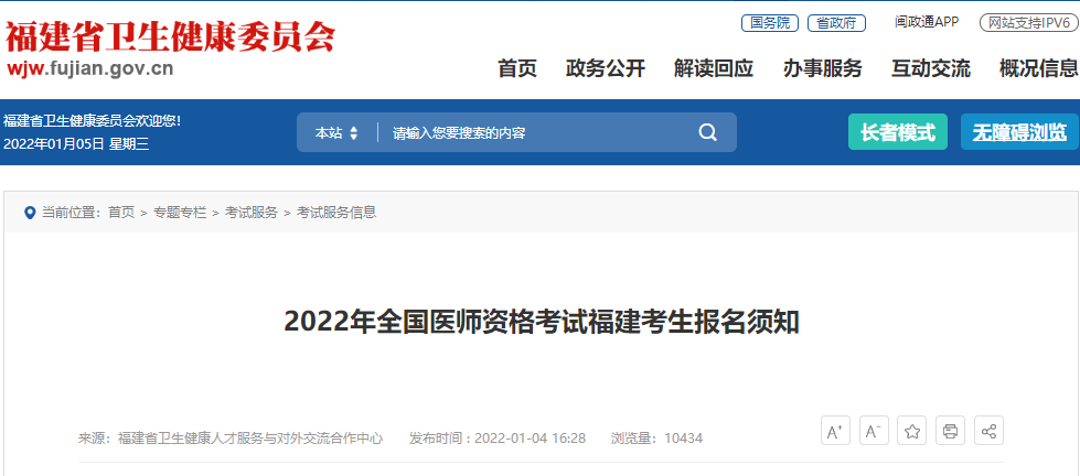 福建考區(qū)2022年中西醫(yī)執(zhí)業(yè)醫(yī)師資格考試報名相關(guān)事宜