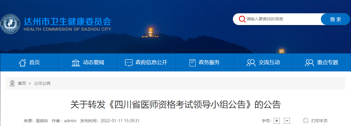 2022年中西醫(yī)執(zhí)業(yè)醫(yī)師資格考試四川省達州市報名及考試通知