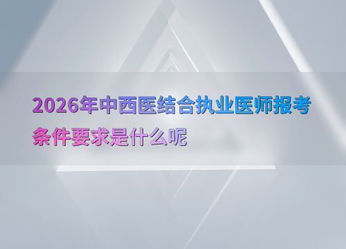 2026年中西醫(yī)結合執(zhí)業(yè)醫(yī)師考試報名預計在1-2月進行,考生需滿足學歷與試用期要求。