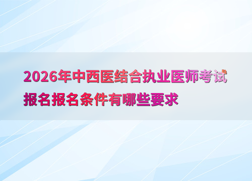 2026年中西醫(yī)結合執(zhí)業(yè)醫(yī)師考試報名報名條件有哪些要求