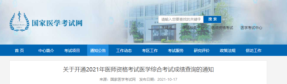 關(guān)于開通2021年中西醫(yī)執(zhí)業(yè)醫(yī)師資格考試醫(yī)學(xué)綜合考試成績查詢的通知