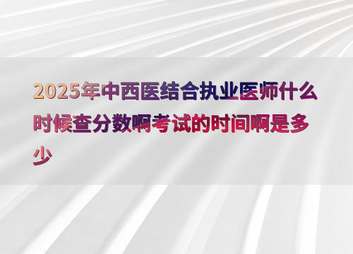 2025年中西醫(yī)結(jié)合執(zhí)業(yè)醫(yī)師什么時候查分?jǐn)?shù)啊考試的時間啊是多少