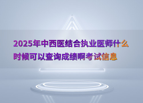 2025年中西醫(yī)結合執(zhí)業(yè)醫(yī)師綜合考試成績預計在9月公布,參考近年數據,一般為考后1個月左右。