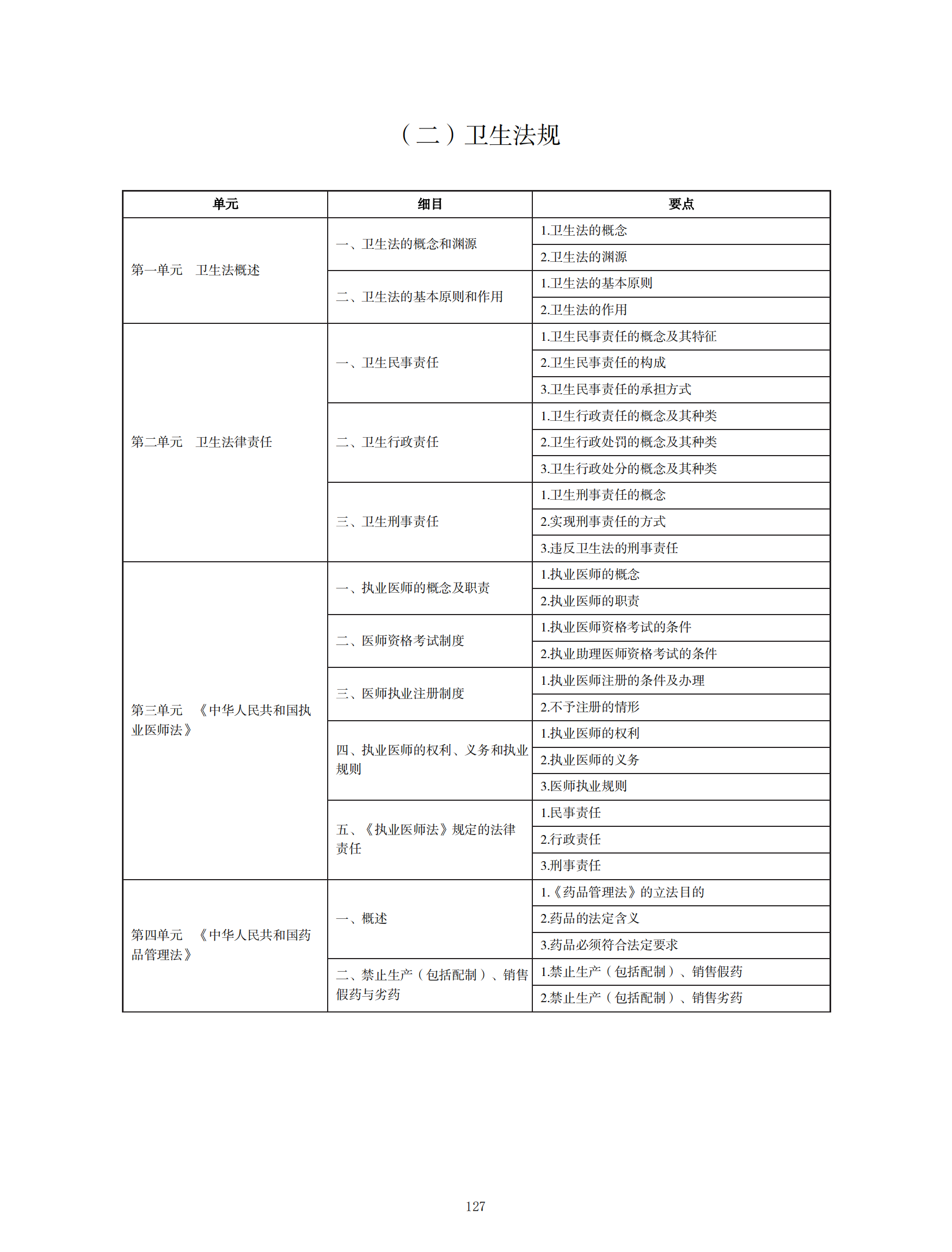 2022年中西醫(yī)執(zhí)業(yè)醫(yī)師考試大綱-醫(yī)學(xué)人文《衛(wèi)生法規(guī)》科目考試大綱