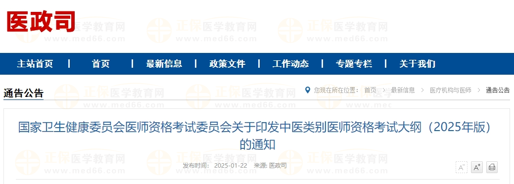 現(xiàn)公布2025年版《中醫(yī)中西醫(yī)結合專業(yè)醫(yī)師資格考試大綱》《蒙醫(yī)專業(yè)醫(yī)師資格考試大綱》《藏醫(yī)專業(yè)醫(yī)師資格考試大綱》《維醫(yī)專業(yè)醫(yī)師資格考試大綱》《傣醫(yī)專業(yè)醫(yī)師資格考試大綱》《哈薩克醫(yī)專業(yè)醫(yī)師資格考試大綱》《中醫(yī)(朝醫(yī))專業(yè)醫(yī)師資格考試大綱》和《中醫(yī)(壯醫(yī))專業(yè)醫(yī)師資格考試大綱》。