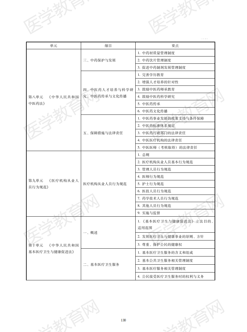 2021年中西醫(yī)結(jié)合執(zhí)業(yè)醫(yī)師資格考試用書(shū)及考試大綱正式發(fā)布!從2021年開(kāi)始,中醫(yī)中西醫(yī)結(jié)合執(zhí)業(yè)(助理)醫(yī)師資格考試衛(wèi)生法規(guī)部分啟用修訂版大綱,除法規(guī)外其余部分大綱繼續(xù)使用《醫(yī)師資格考試大綱(中醫(yī)、中西醫(yī)結(jié)合)2020年版》。醫(yī)學(xué)教育網(wǎng)編輯為您整理衛(wèi)生法規(guī)考試大綱原文下載——2021年中西醫(yī)結(jié)合執(zhí)業(yè)醫(yī)師考試大綱內(nèi)容如下: