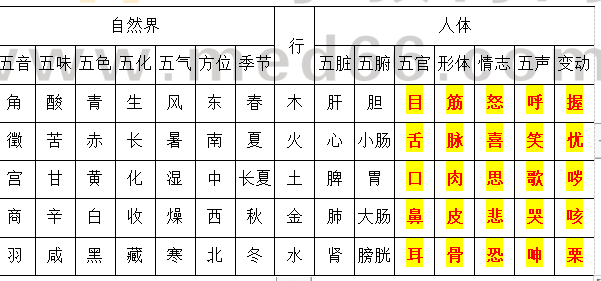 4.五體的陰陽(yáng)屬性:皮肉為陽(yáng)中之陽(yáng),筋骨為陽(yáng)中之陰,皮膚為陽(yáng)中之陽(yáng),肌肉為陽(yáng)中之陰,筋為陰中之陽(yáng),骨為陰中之陰。