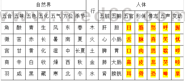 6.事物屬性的五行歸類表