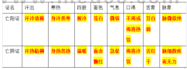 30.亡陽(yáng)證與亡陰證的鑒別見下表
