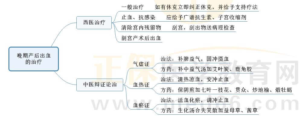 【中西醫(yī)婦科學(xué)】科目——2022年中西醫(yī)執(zhí)業(yè)醫(yī)師考點(diǎn)思維導(dǎo)圖:晚期產(chǎn)后出血的治療